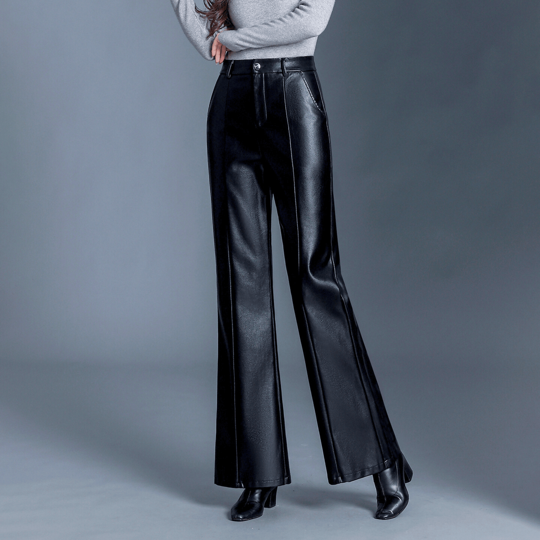 Crafted from premium leather with a smooth grain finish, offering refined structure with effortless movement. Defined by its high-waist, elongating silhouette and minimalist tailoring, it evokes modern confidence with timeless style.