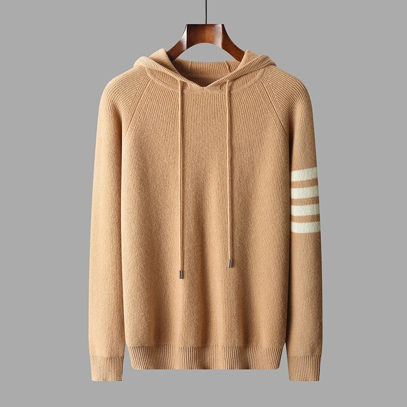 Ease into the day with the quiet luxury of pure merino wool—soft, breathable, and warm without the weight. A single striped sleeve detail brings modern edge to a timeless knit, designed to feel as good as it looks from first wear to last light.